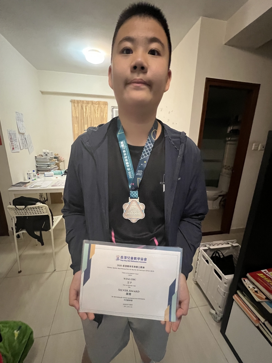 4E 王子於〈香港兒童數學協會:香港數學及奧數公開賽 2025〉榮獲中四數學組銀獎(數學科)