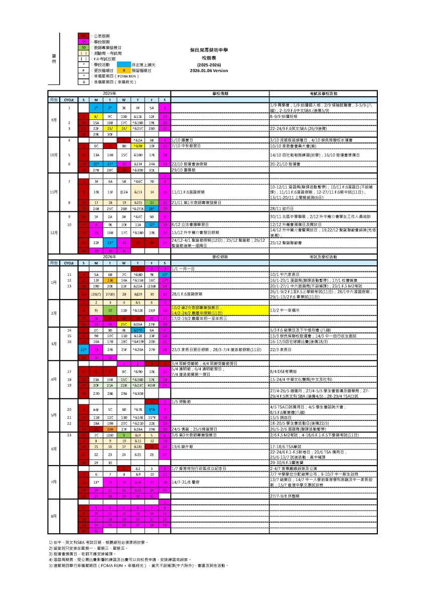 校曆表 School Calendar
