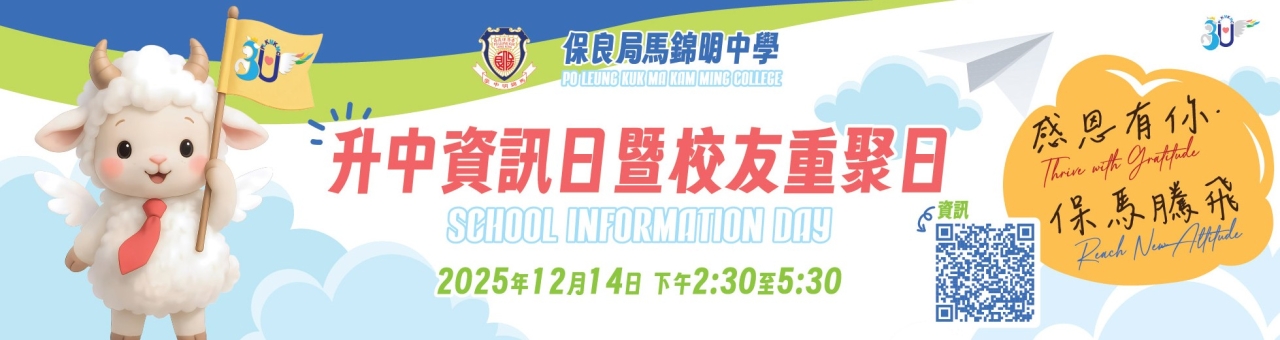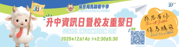 2) 原訂於 2025 年 12 月 14 日(星期日)舉行的下午開放日將改為「升中資訊日暨校友重聚日」,活動時間調整為下午 2:30 至 5:30,歡迎校外嘉賓、公眾人士、中小學學生及家長、本校校友、本校學生及家長出席。是次活動無需報名。